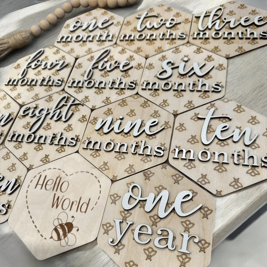3D Bumble Bee Milestones, Hexagon Bumble Bee Baby Milestones, Monthly Photo Tags, Baby Month Markers, Custom, Gift, Baby Shower, Hello World