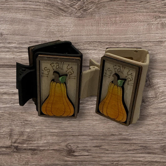 2" Hello Fall Claw Clip, Hair Clip, Hello Fall Hand Painted Hair Claw Clip, Hair Claw Clip: Wooden Fall Accessory