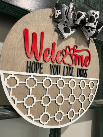 Welcome Door Hanger for Dog Lovers, Dog-Themed Welcome Sign, Personalized Welcome Decor, Custom Dog Lover Door Hanger, Unique Welcome Sign