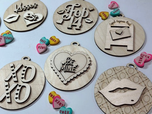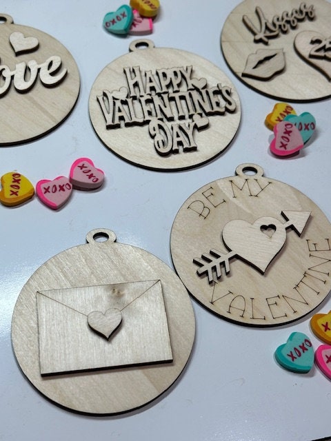 Valentines Ornaments, Set of 10 wooden ornaments, Ornaments, Valentines, Valentines Day Ornaments, Love, Romantic