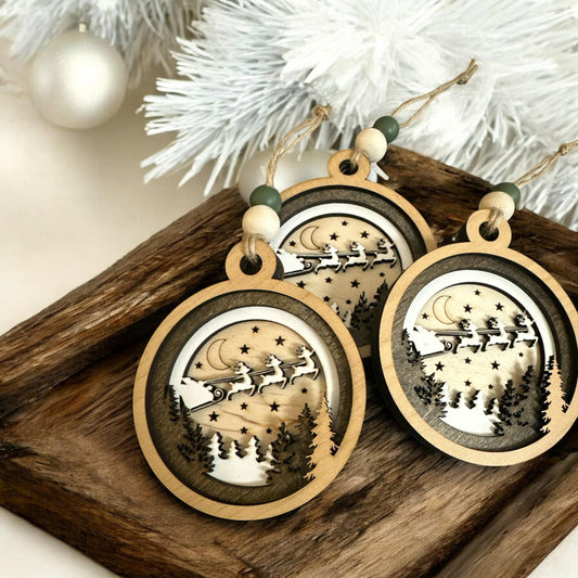 Christmas in Heaven Ornament: Rustic Wooden Santa Sleigh, 4-Layer Birch