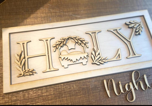 Holy Night Sign, Christmas Sign, Baby Jesus, Jesus Sign, Welcome, Holiday Shelf Sitter, Nativity, Holy Night Decor, DIY, Unfinished