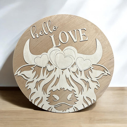 Highland Cow Valentine, Doorhanger, Highland Cow Hearts, Highland Cow Love, Holiday, Valentines, Cow Sign, DIY, Finished, Unfinished