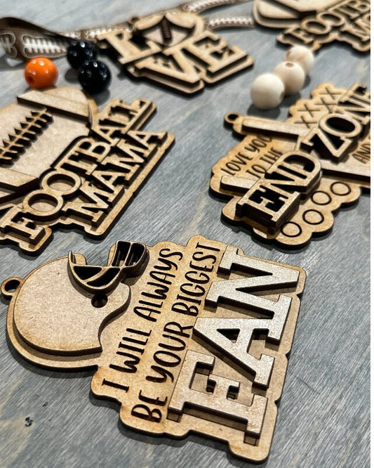 Unfinished DIY Sports Charms, Football Charms Unfinished, Wooden Charms for Crafting, Blank DIY Sports Charm, Customizable Football Charms