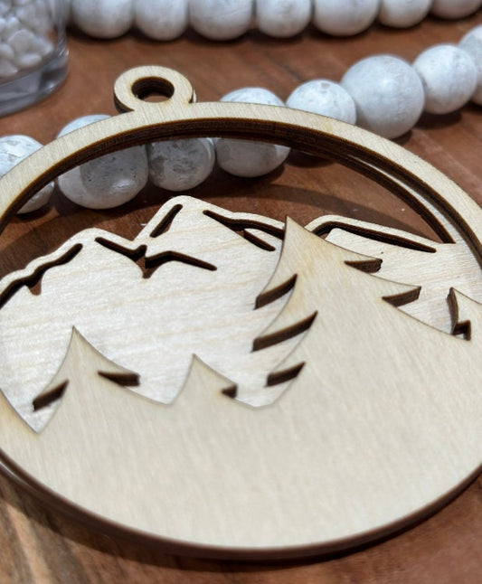 Mountain Charm, Unfinished, Wooden Charms, Mountain and Trees Unfinished, DIY, Blank Ornament, Ornament, DIY, Mount Car Charm