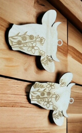 Unfinished DIY Floral Cow Car Charm, Floral Cow Charm, Floral Car Charms, DIY Floral Cow Car Charm, Cow Charm, Wooden Charm