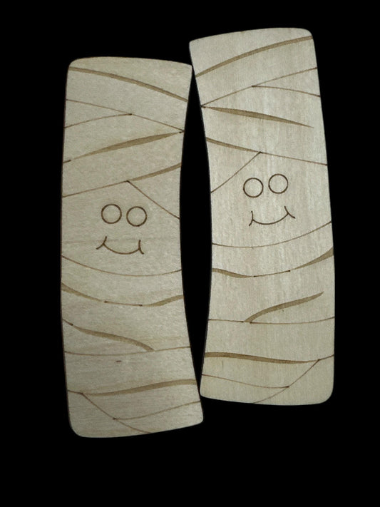 Mummy Ghost DIY Wood Laser Blank Hair Clip Pieces, Wooden Hair Clip, Wood is Ready to Paint, Laser Cut Claw Clip, Unfinished, 2" and 4"