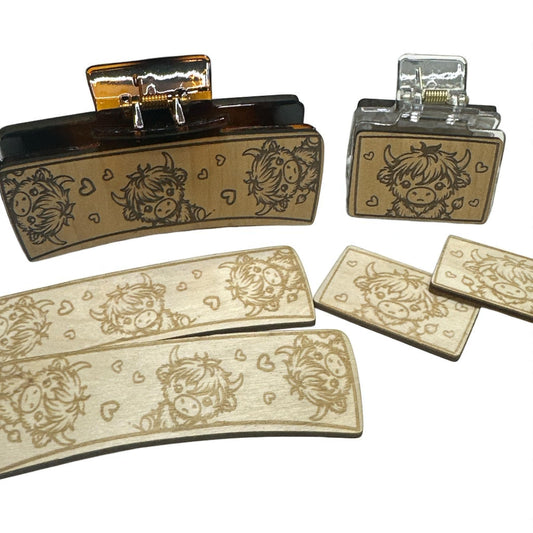 DIY Highland Cow Wood Hair Clip Pieces: Laser Cut Blanks for 4" Claw Clip, Cow Claw Clip, Wooden Claw Clip Unfinished
