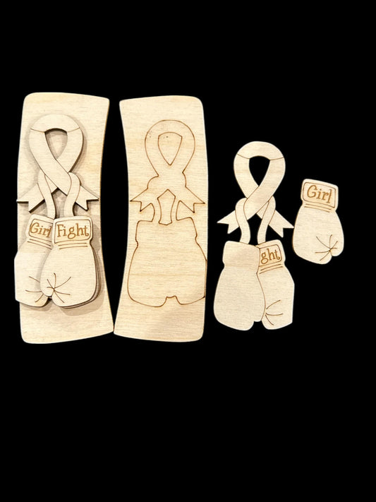 Cancer Girl Fight DIY Wood Laser Blank Hair Clip Pieces, Unfinished Hair Clip, Wood is Ready to Paint, Survivor Cancer DIY, Boxing Gloves