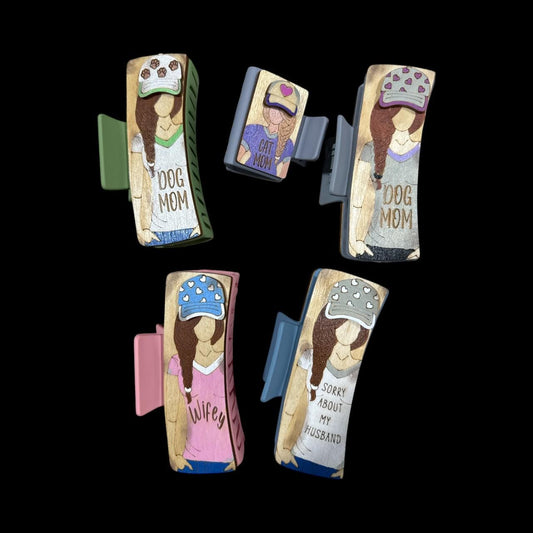 4" Mom Claw Clip, Dog Mom Claw Clip, Hand-painted claw clip, Sorry About my husband, Wifey Claw Clip, Cat Mom Claw Clip