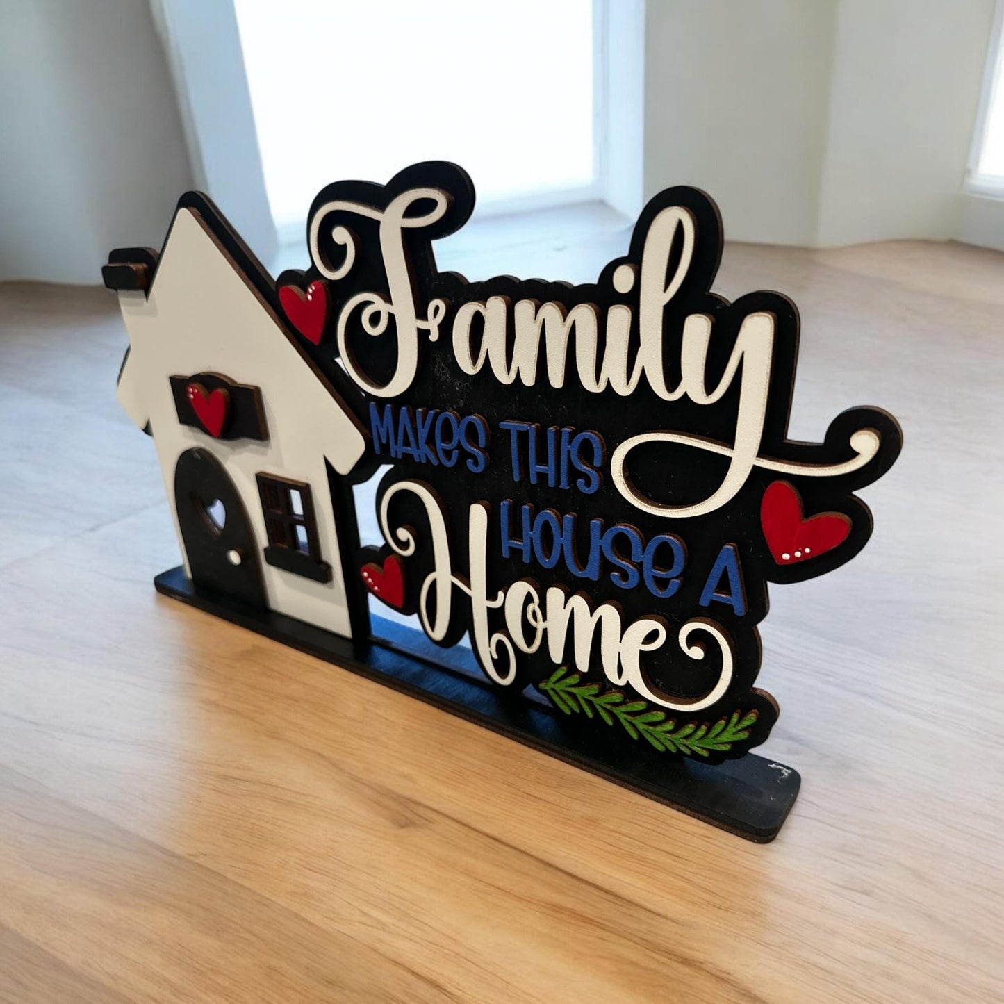 Family Makes this house a home Shelf Sitter with tea light holder: This is available in an many color schemes. You can get this with your choice of personalization.