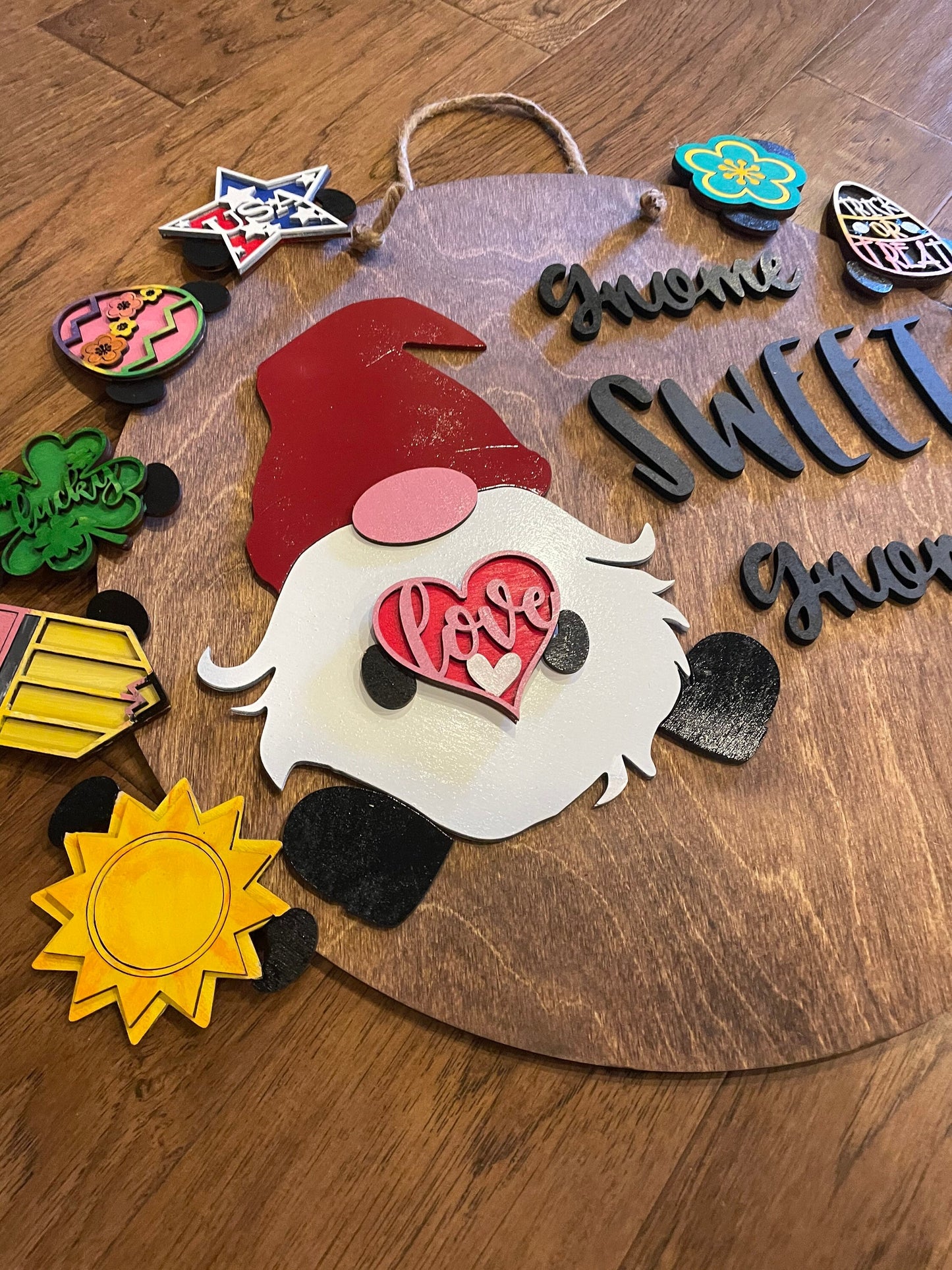 Gnome Sweet Gnome Door Hanger, Interchangeable Gnome Door Decor, DIY Home Decor, Seasonal Gnome Sign, Perfect Gift Giving, Custom Door Sign