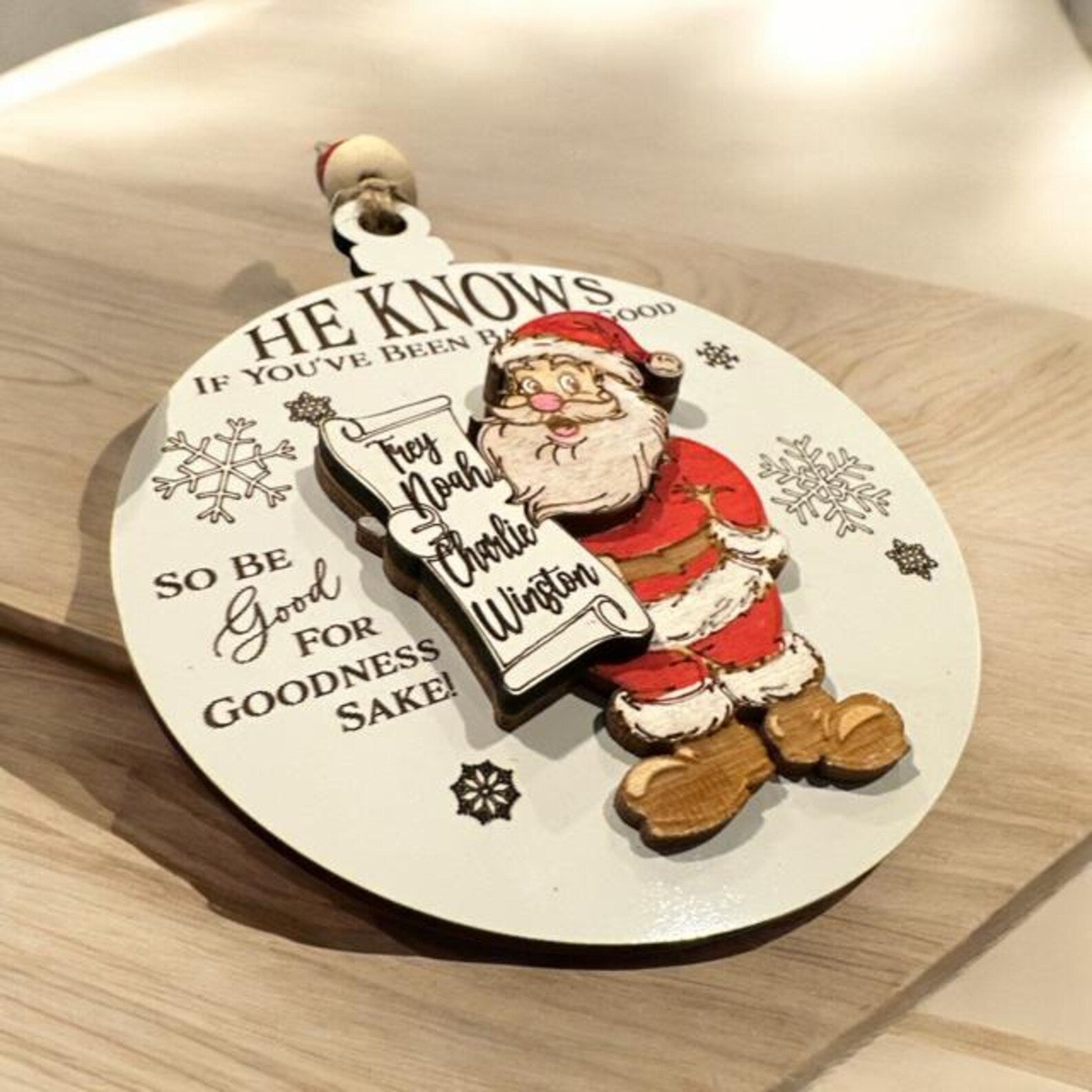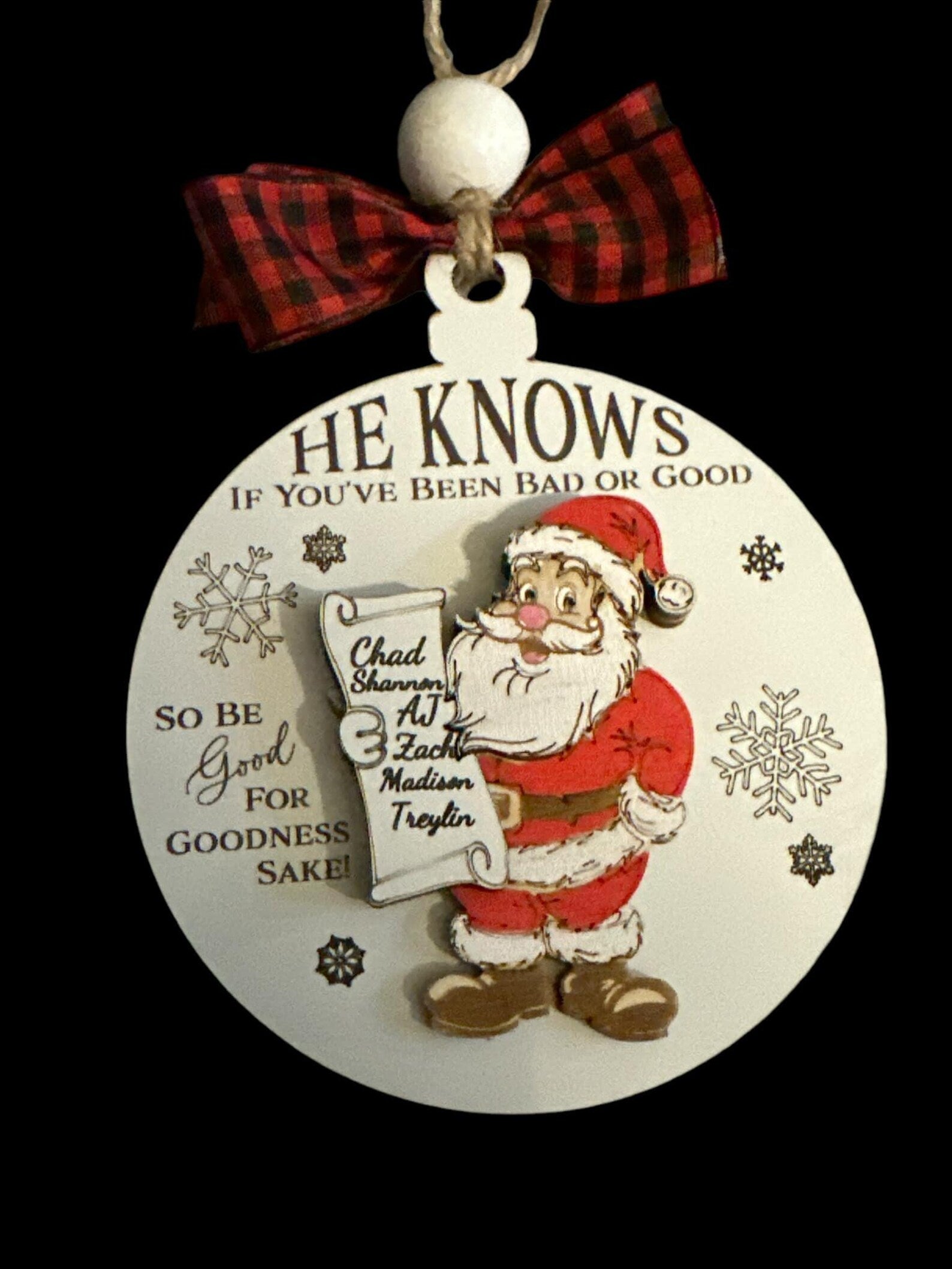 Handmade, He Knows Ornament, Personalized, Christmas Ornament, Santa Ornament