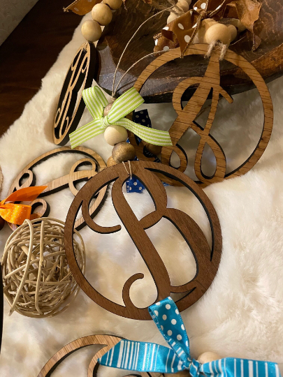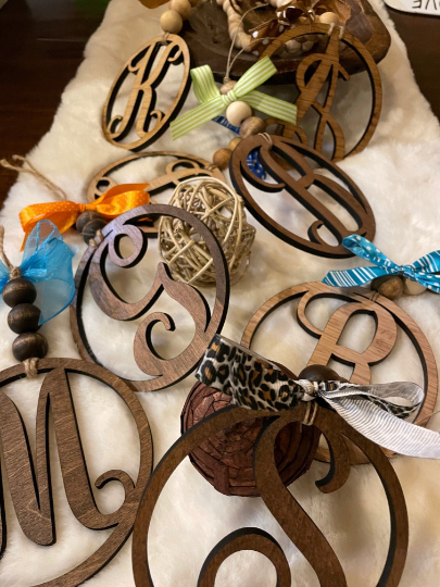 These beautifully personalized Monograms are great for many things, Car Décor (from rear view mirror) to put on a gift, wall décor, key chains the possibilities are endless.