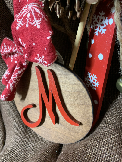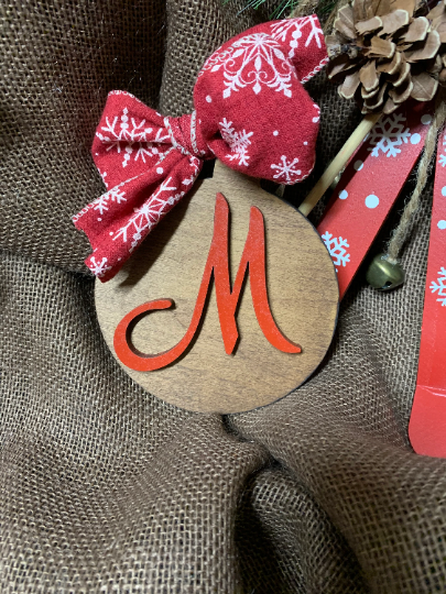 These wood letter ornaments are laser cut and 3-D. They can be hung on a tree, placed on a shelf as decor, or even attached as a gift tag.