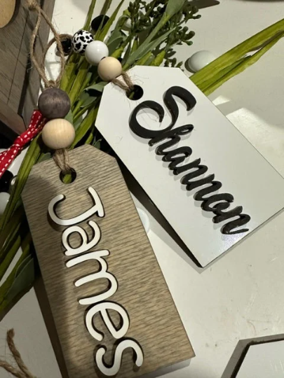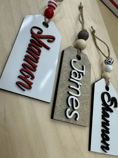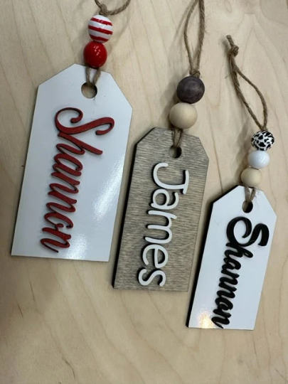 This listing is for one wooden name tag. These can be used as present tags, stocking tags, ornaments, and more!