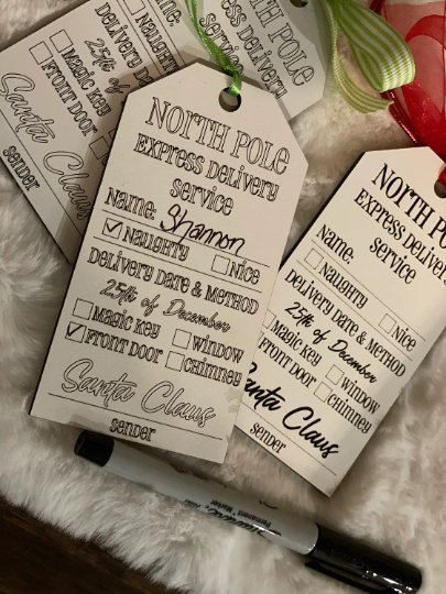 These are Custom Engraved Gift Tag from Santa, they are available blank or with your child’s name on it! Tuck it away after the holidays and reuse it every Christmas!