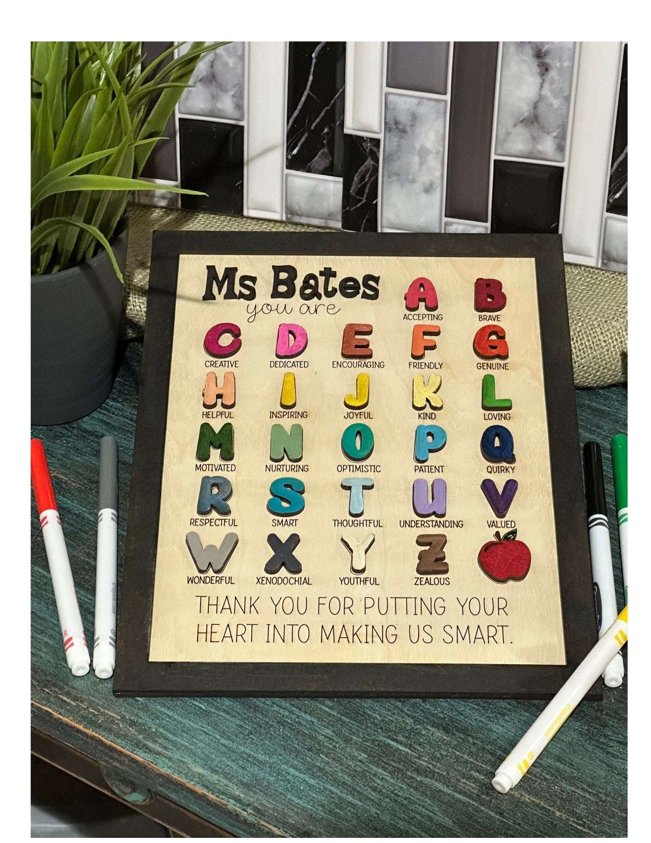 Teacher Plaque/ Teacher / Teacher ABC / ABC Plaque / Custom Teacher Sign